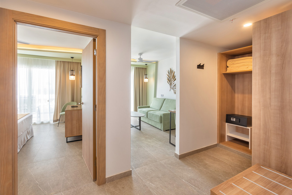 A Hotel Riu Palace Maspalomas Junior lakosztályai a a legmagasabb kényelmi szolgáltatásokat nyújtják Önnek egy felejthetetlen nyaraláshoz. Ezekben a 45 m2-es szobákban queen méretű kétszemélyes ágy (200x200 cm) várja, a nappaliban kinyitható kanapét is talál.